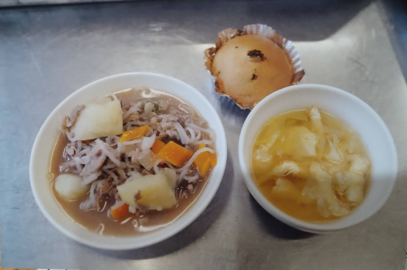 4月11日 肉じゃがとお味噌汁 おやつカップケーキ
