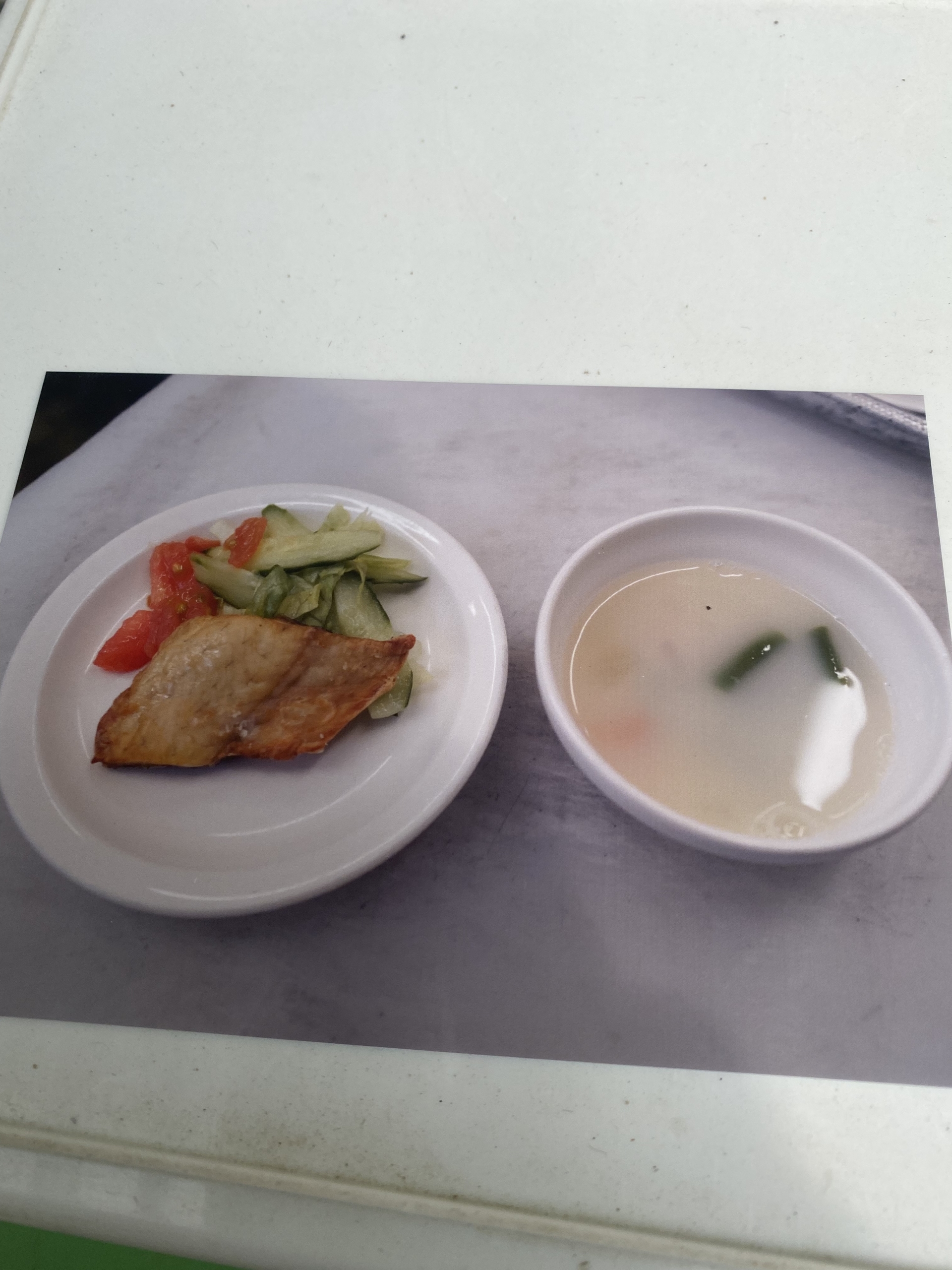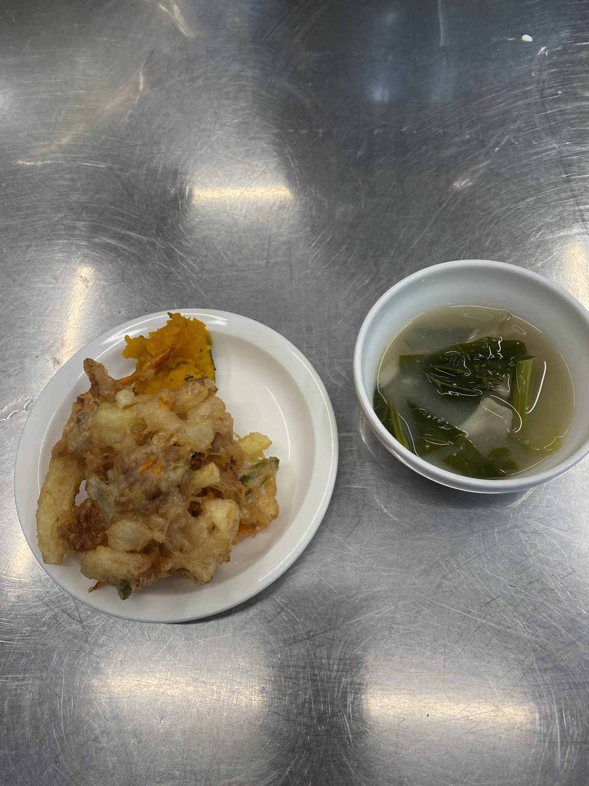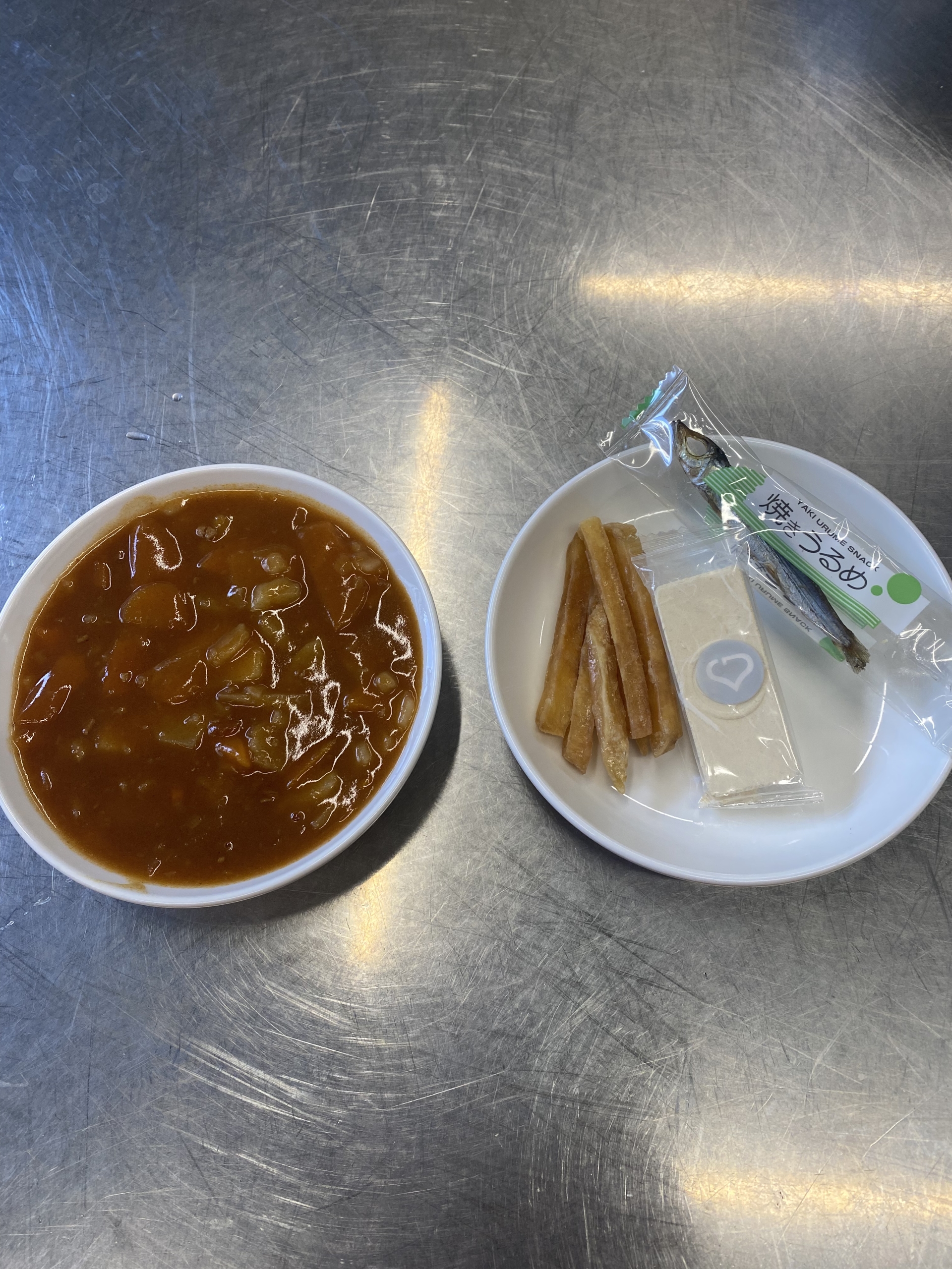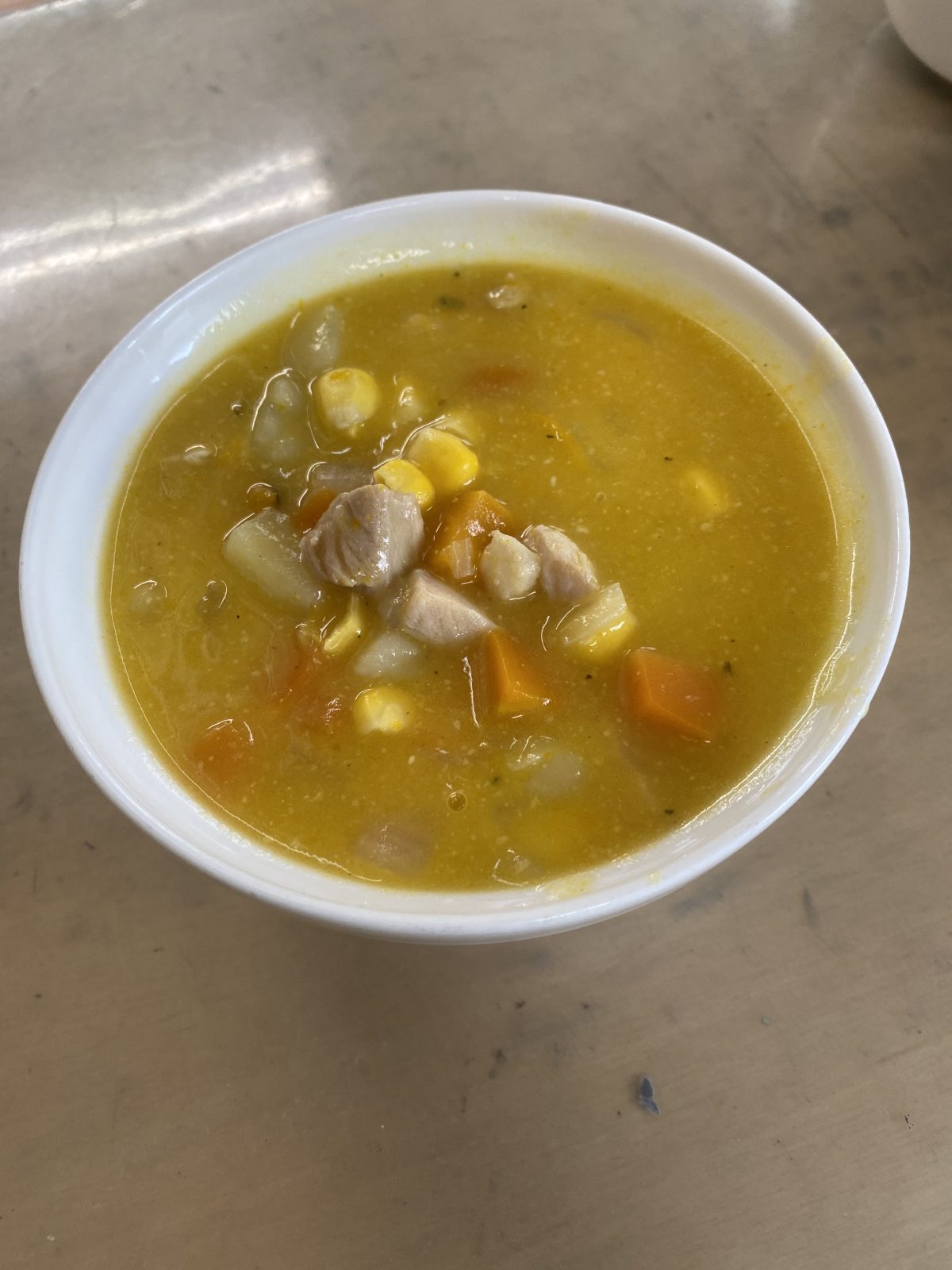 4月28日 鶏肉のパイン炒め お味噌汁 ドーナツ